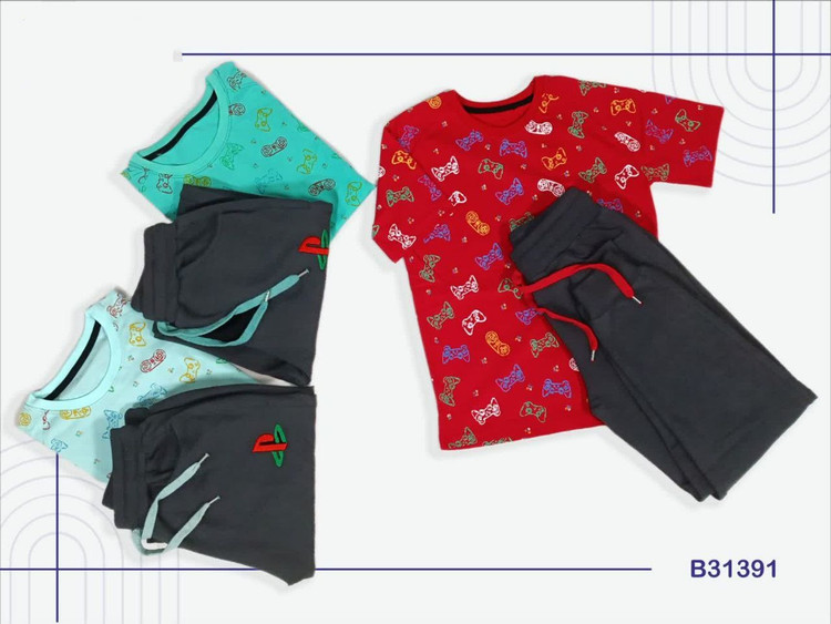 ست تیشرت و شلوار پسرانه مدل راحتی خانگی و بیرونی طرح گیمر.جنس نخ پنبه