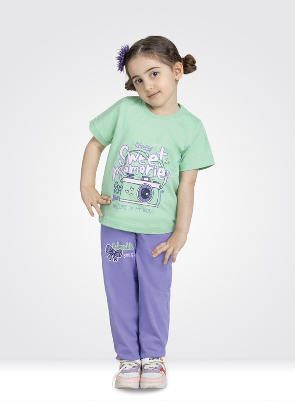 ست تیشرت و شلوار دخترانه مدل راحتی و خانگی طرح memory.جنس نخ پنبه