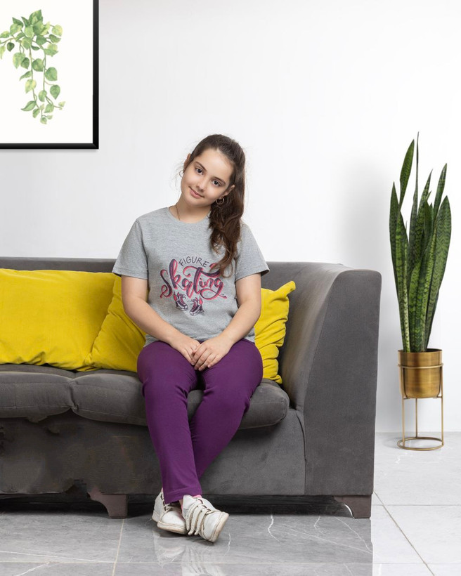 ست تیشرت و شلوار دخترانه مدل راحتی و خانگی طرح فیگور تینیجر.جنس نخ پنبه