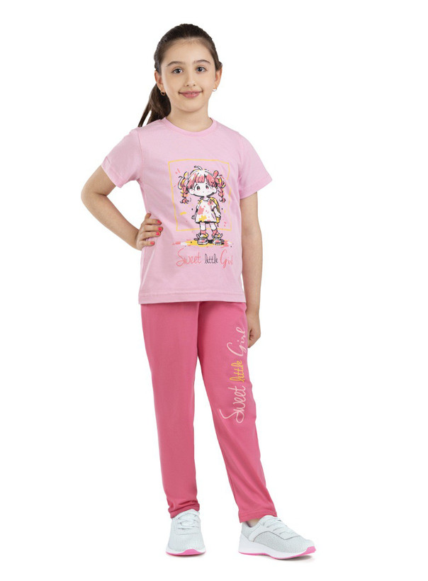 ست تیشرت و شلوار دخترانه مدل راحتی بیرونی و خانگی طرح دخترک.جنس نخ پنبه