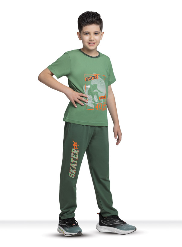 ست تیشرت و شلوار پسرانه مدل راحتی خانگی و بیرونی طرح اسکیتر.جنس نخ پنبه